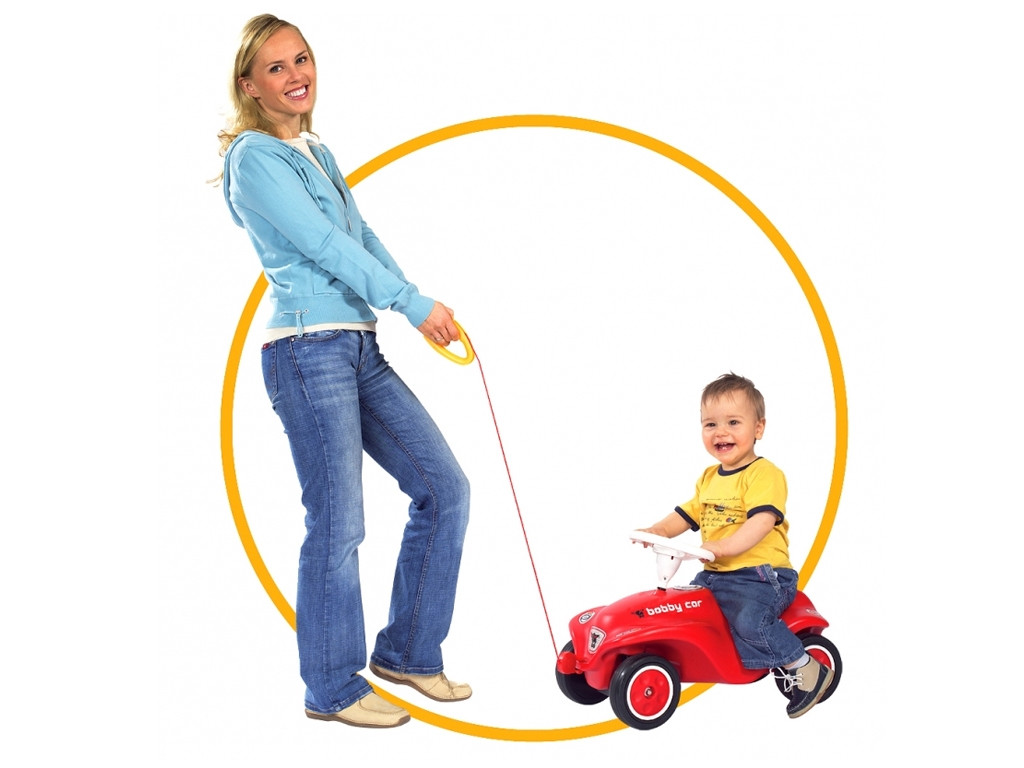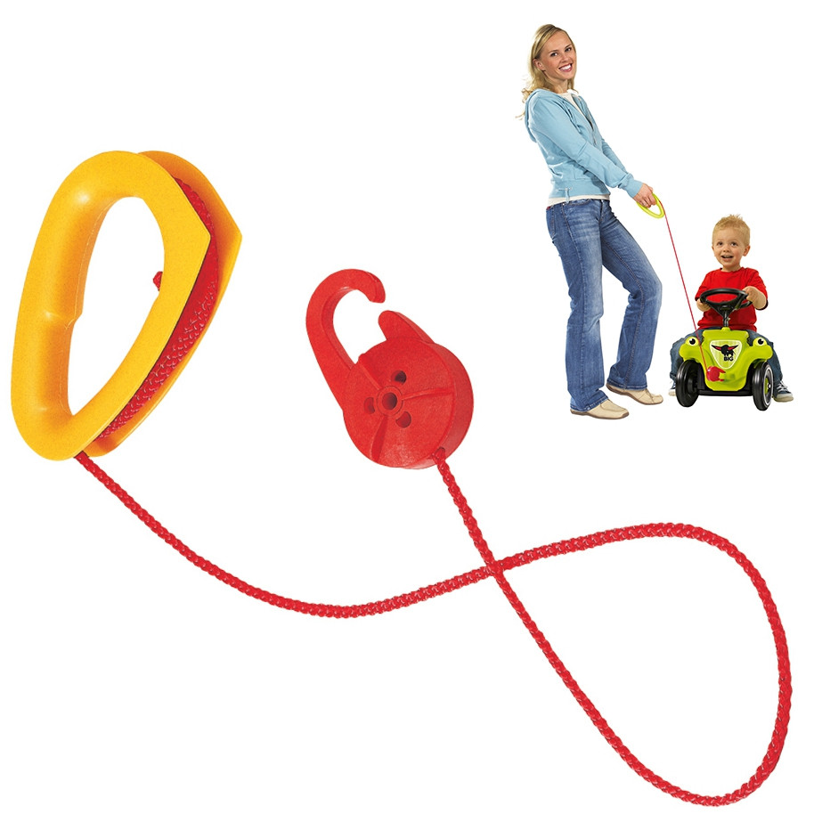 BIG Czerwona Lina holownicza z żółtym uchwytem pasuje do wszystkich pojazdów BIG Bobby Car wyposażonych w uchwyt holowniczy. Łatwo się także mieści w kieszeni, gdy nie jest używana.