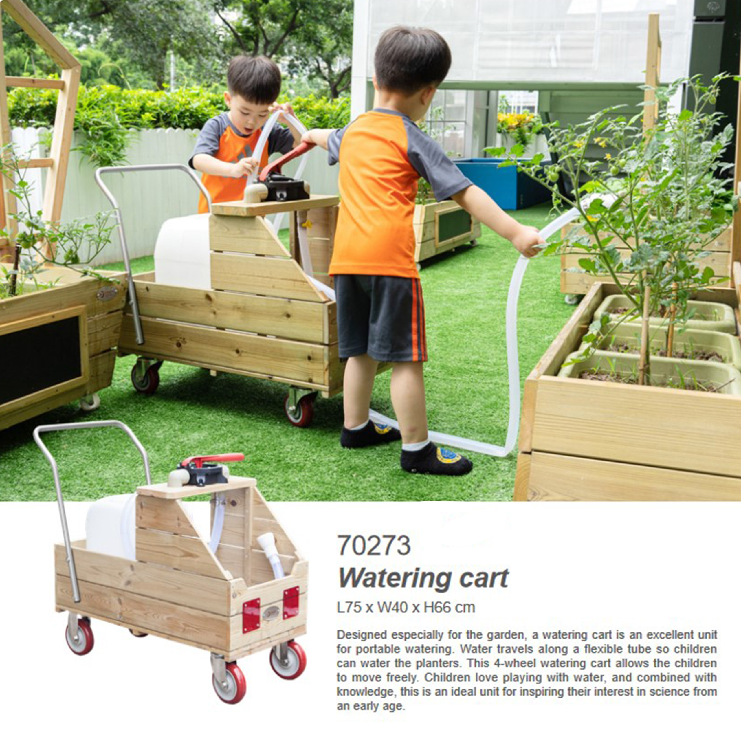 Drewniany Beczkowóz od renomowanej marki CLASSIC WORLD EDU został zaprojektowany z myślą o dzieciach uczących się pracy w ogrodzie – wózek jest doskonałym urządzeniem do przenośnego podlewania. Woda przepływa elastyczną rurką, dzięki czemu dzieci mogą podlewać rośliny z łatwością. Maluchy uwielbiają zabawę wodą, a w połączeniu z nauką o przyrodzie i wypracowaniu odpowiedzialności skutkuje to interesującą i rozwijającą zabawą.
