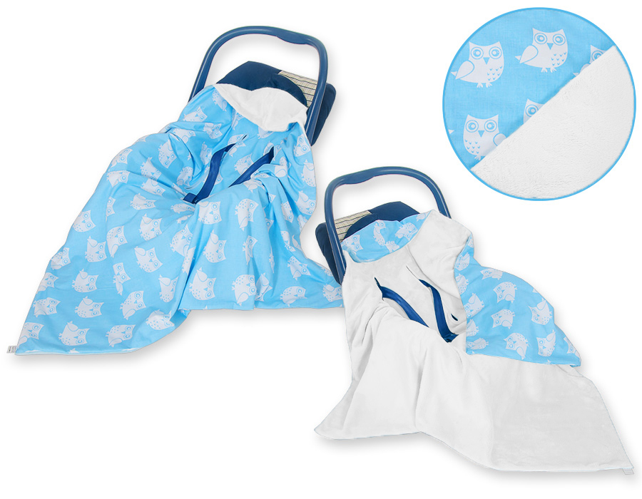 Duży otulacz do fotelika – dwustronny kocyk dla niemowląt do nosidełka- fotelika samochodowego, z bawełny i minky