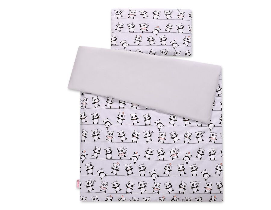 Dwustronna pościel dla dzieci 2-częściowa bawełniana – pandy szare