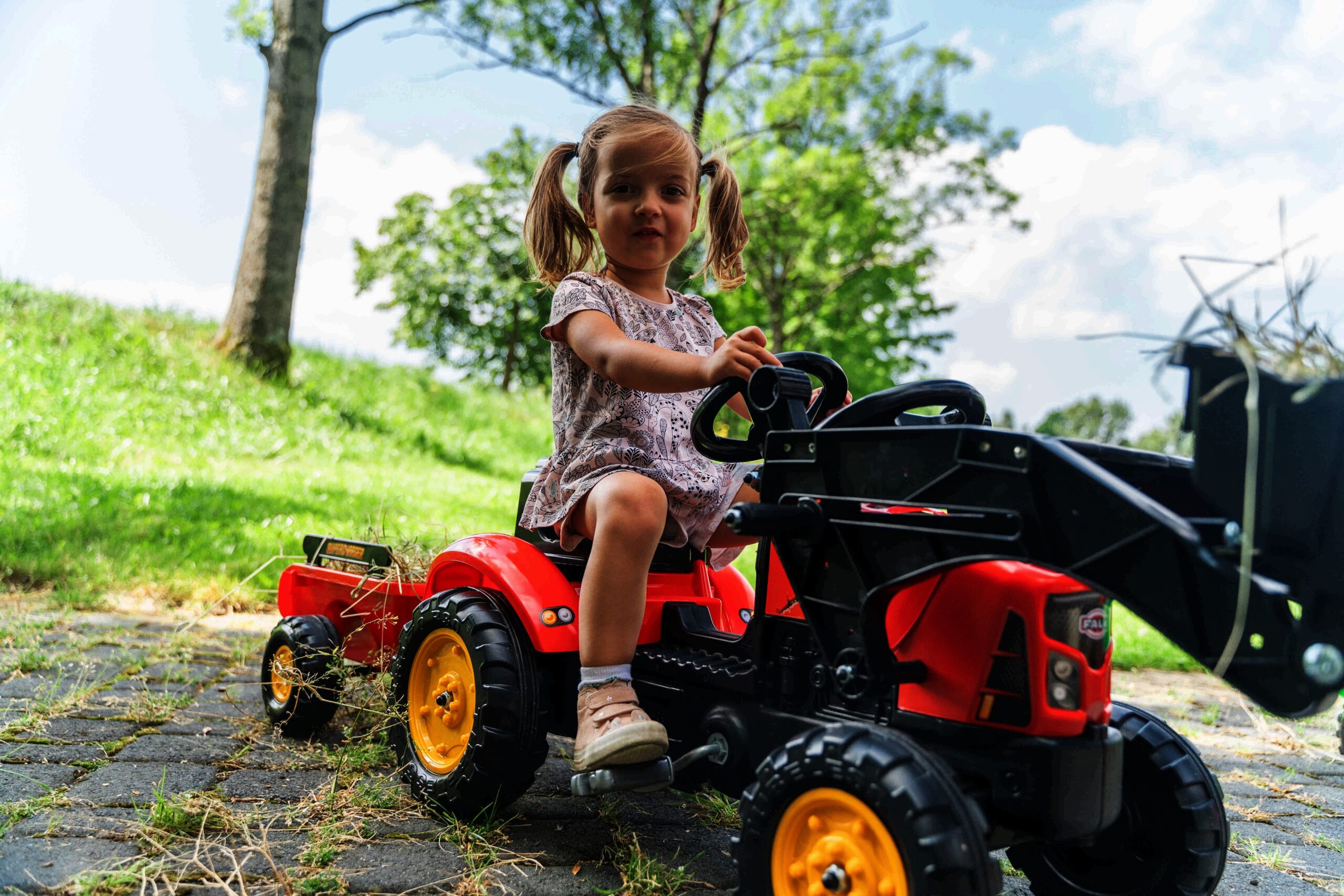 Traktor-Koparka na pedały Supercharger Red od renomowanej marki FALK to wspaniała zabawka dla małych miłośników maszyn budowlanych i rolniczych. Zaprojektowany z dbałością o detale, wyposażony w funkcjonalną, ruchomą łyżkę przednią oraz dużą przyczepę o dużej pojemności, która z łatwością pomieści piasek, liście czy kamienie. Realistyczną zabawę wzmacnia otwierana maska, dająca dostęp do “silnika”, oraz kierownica z klaksonem. Wyprodukowany w całości we Francji, w 40% z recyklingowanego plastiku, gwarantuje godziny bezpiecznej zabawy na świeżym powietrzu.