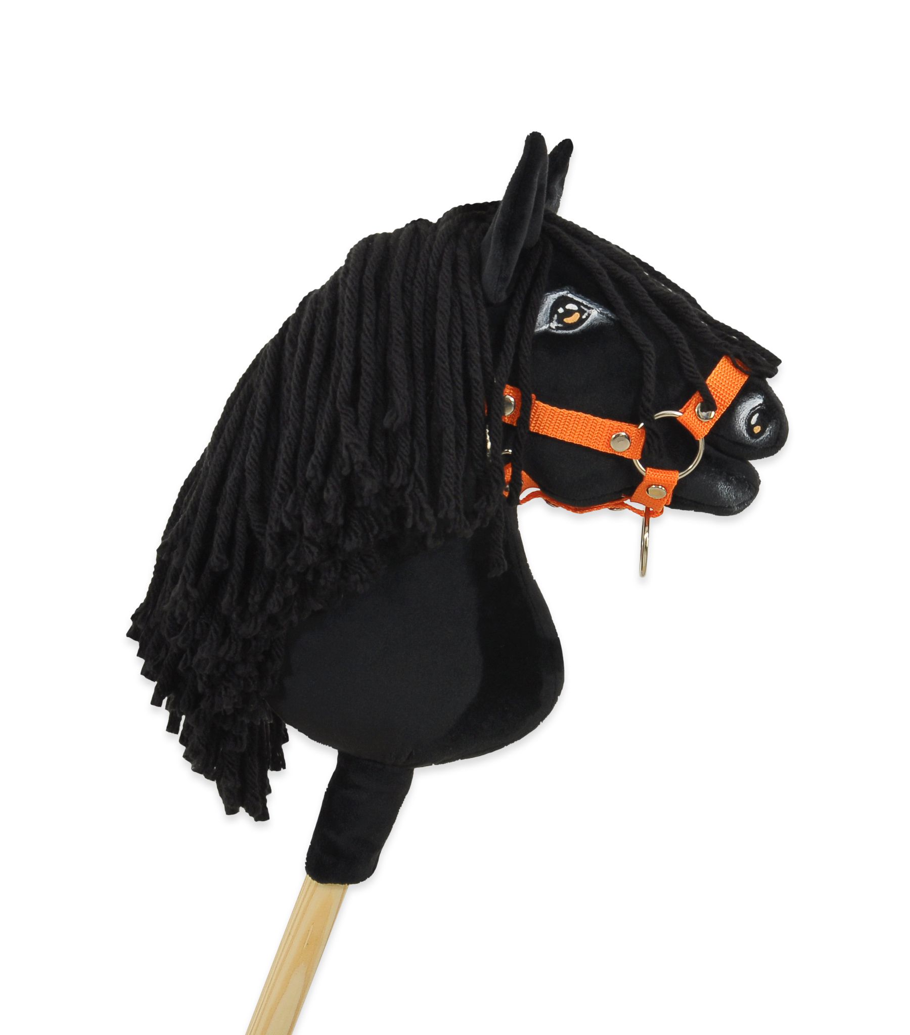 Czarny Hobby Horse, z czarną długą miękką grzywą idealną do tworzenia pięknych fryzur.
