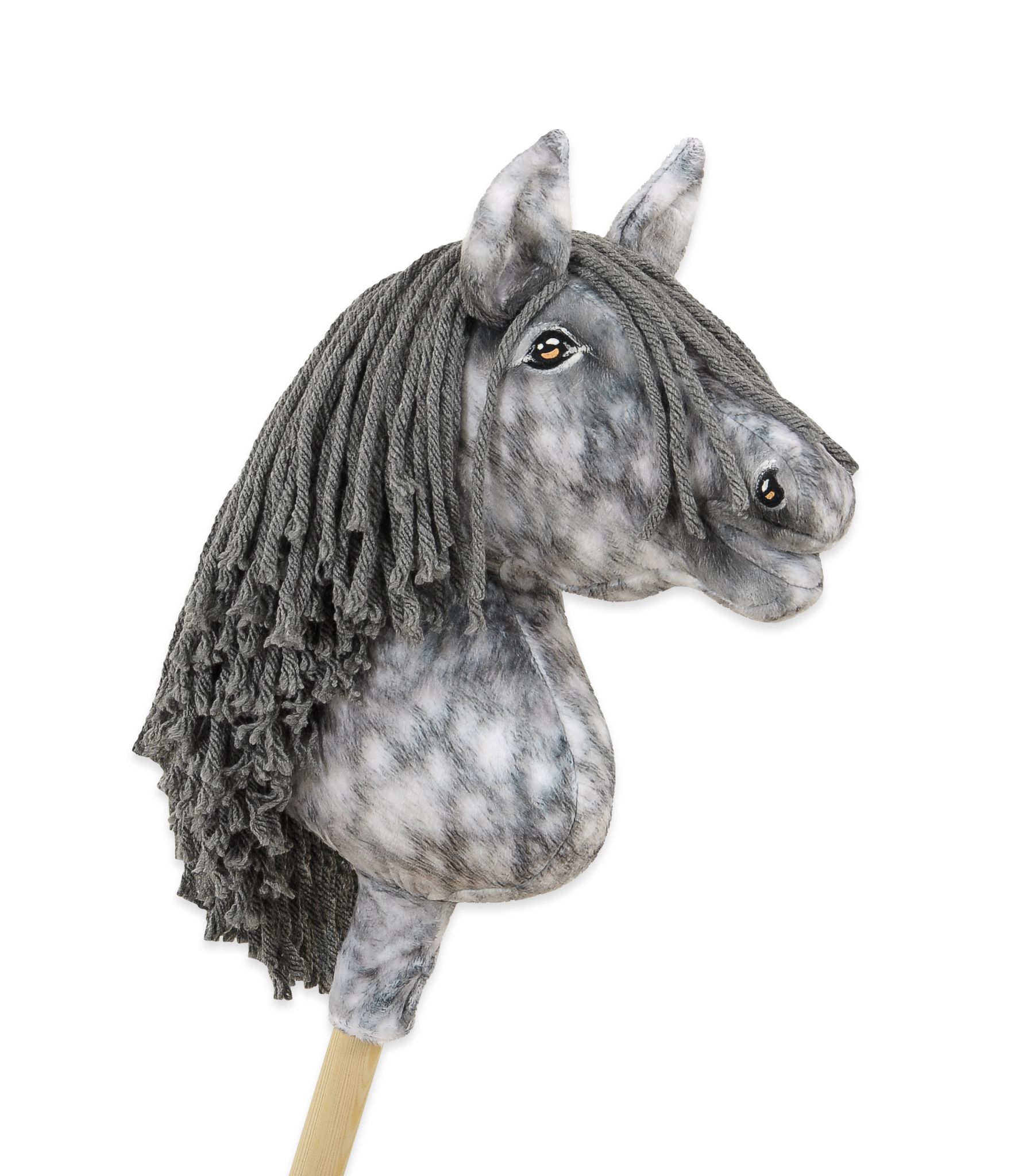 Super Hobby Horse – piękny realistyczny koń na kiju – siwy jabłkowity koń z siwą grzywą