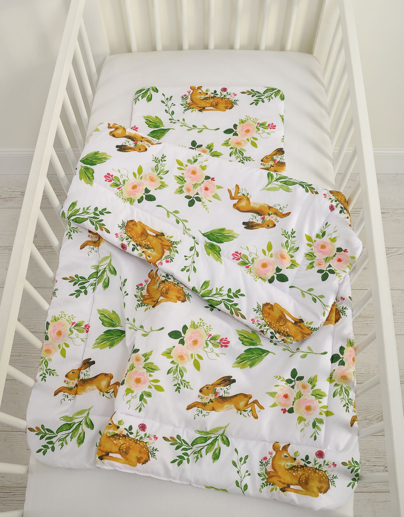 - zewnętrzna warstwa to tkanina 100% bawełniana, atestowana, miła w dotyku. Wzór znajduje się na obu stronach poduszki i kołderki;