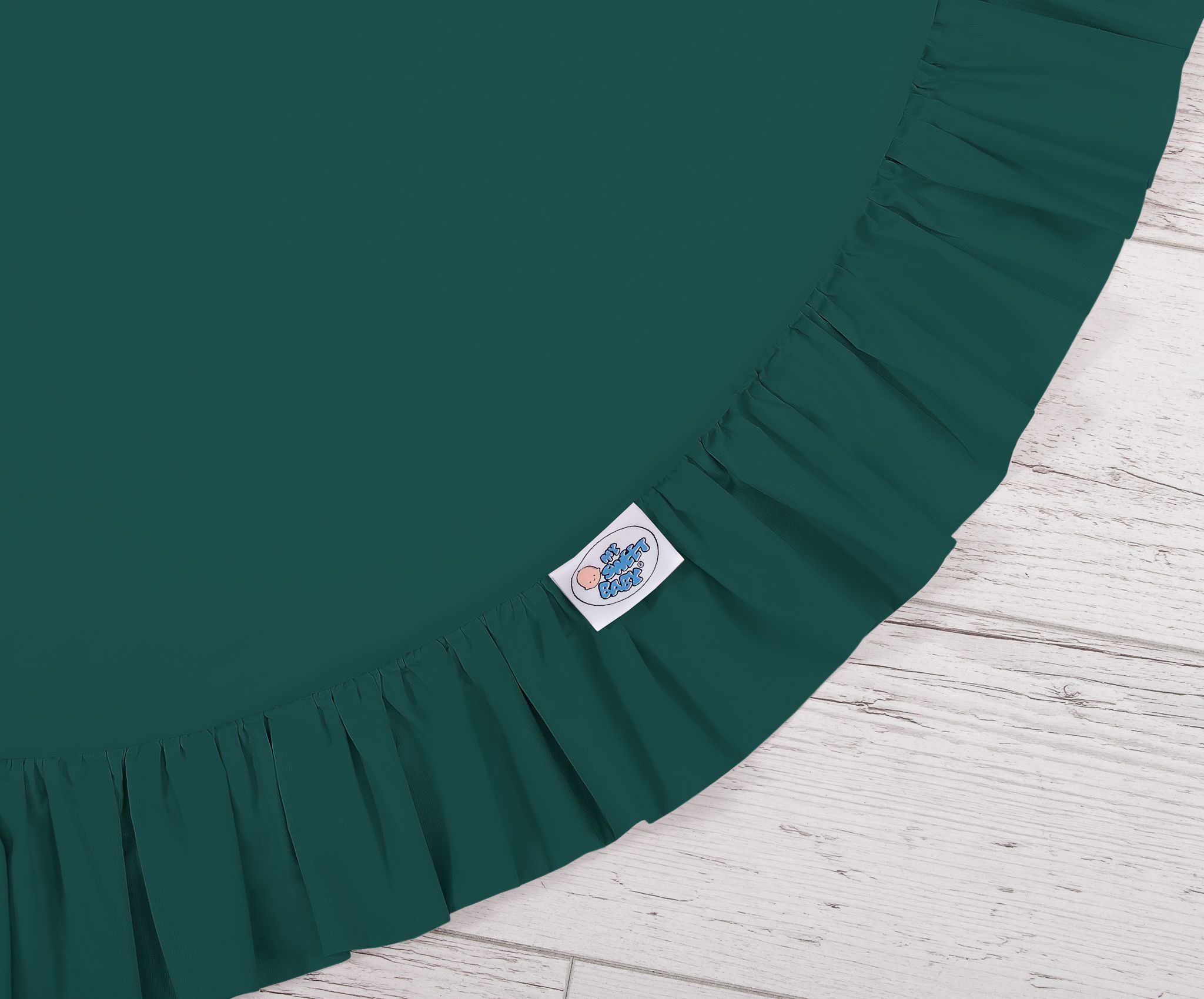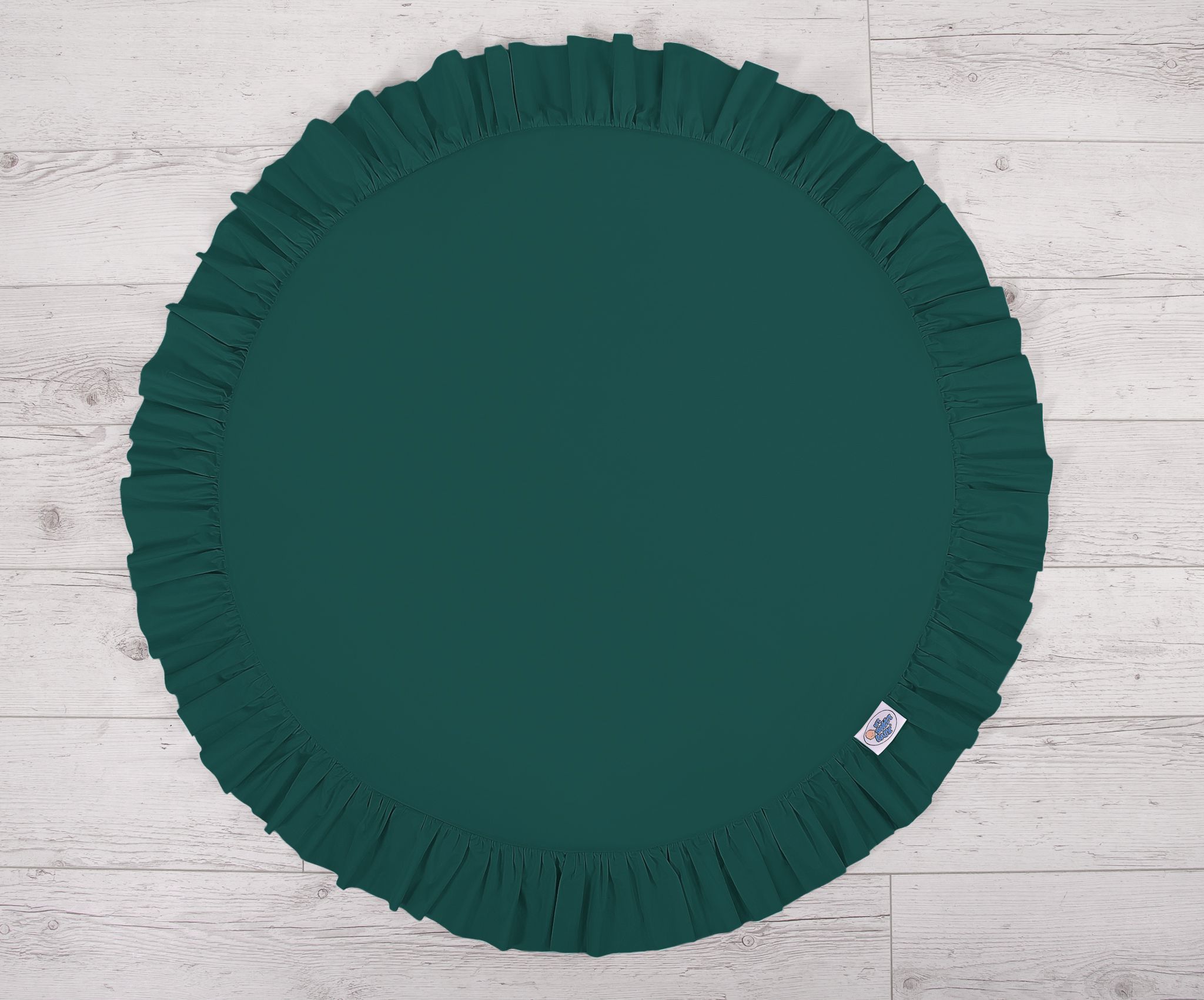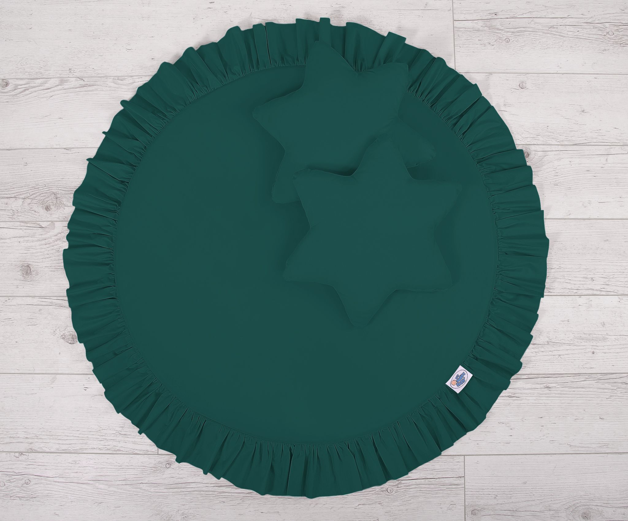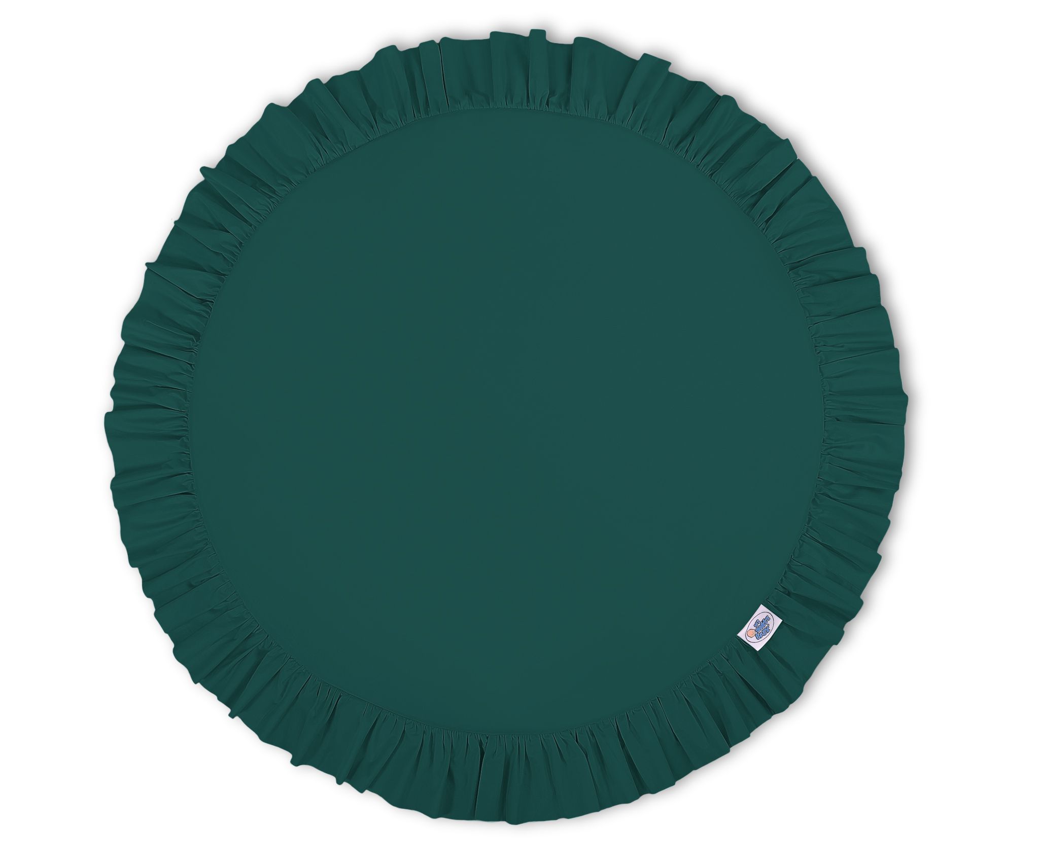 Okrągła duża mata z falbanką. Funkcjonalna i praktyczna. Doskonale sprawdzi się jako dywanik, mata do zabawy lub “podłoga” baldachimu zawieszonego na suficie. Już od pierwszych miesięcy może służyć jako mata do leżenia na brzuszku. Mata posiada miękki materacyk, które świetnie izoluje od twardej i zimnej podłogi. Okrągła mata to również świetne miejsce do zabawy i odpoczynku. Wykonana z tkaniny 100% bawełnianej, posiadającej atest Okotex. Mata jest rozbieralna, dzięki czemu łatwo wyprać sam pokrowiec. Wkładka maty wykonana jest z nowoczesnego antyalergicznego atestowanego surowca.