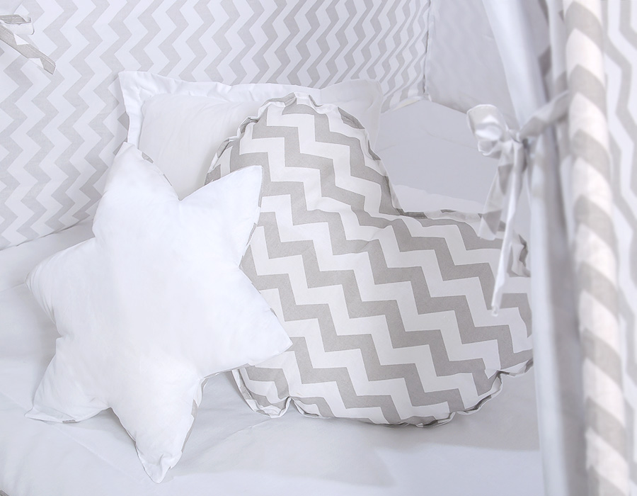 W komplecie zestaw 3 poduszek kolorystycznie dopasowanych do namiotu w trzech różnych kształtach: serduszko, gwiazdka i kwadratowy jasiek. Wykonane z najwyższej jakości atestowanej 100% bawełny, wypełnione specjalnym atestowanym włóknem – ECO FILLBALL.