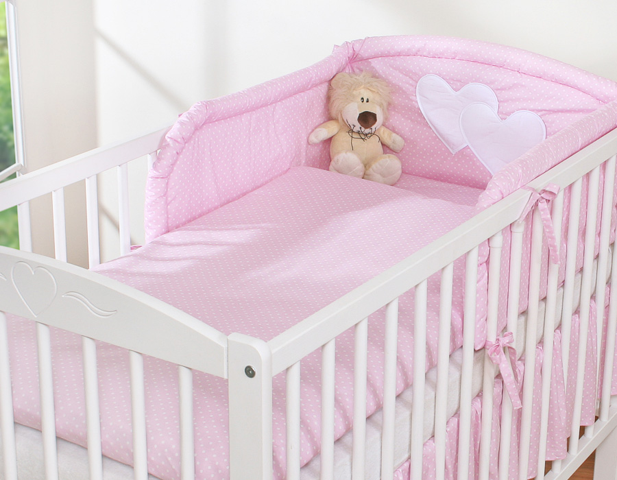 Ochraniacz do łóżeczka na szczebelki uniwersalny – Serduszka kropki na różu