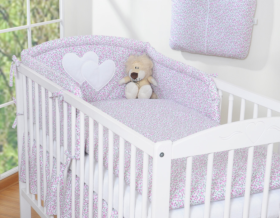 Ochraniacz do łóżeczka na szczebelki uniwersalny – Serduszka łączka różowa