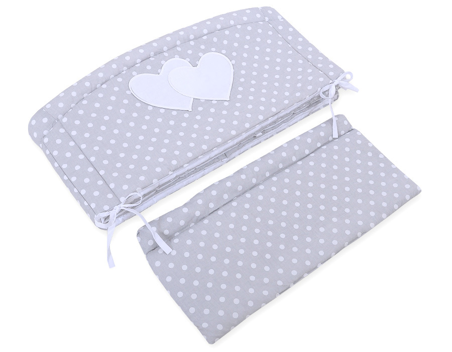Ochraniacz do łóżeczka na szczebelki uniwersalny XXL - Białe grochy na szarymOchraniacz do łóżeczka na szczebelki uniwersalny XXL – Białe grochy na szarym