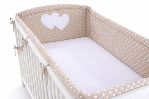 Ochraniacz do łóżeczka na szczebelki uniwersalny XXL – Serduszka groszki na brazie