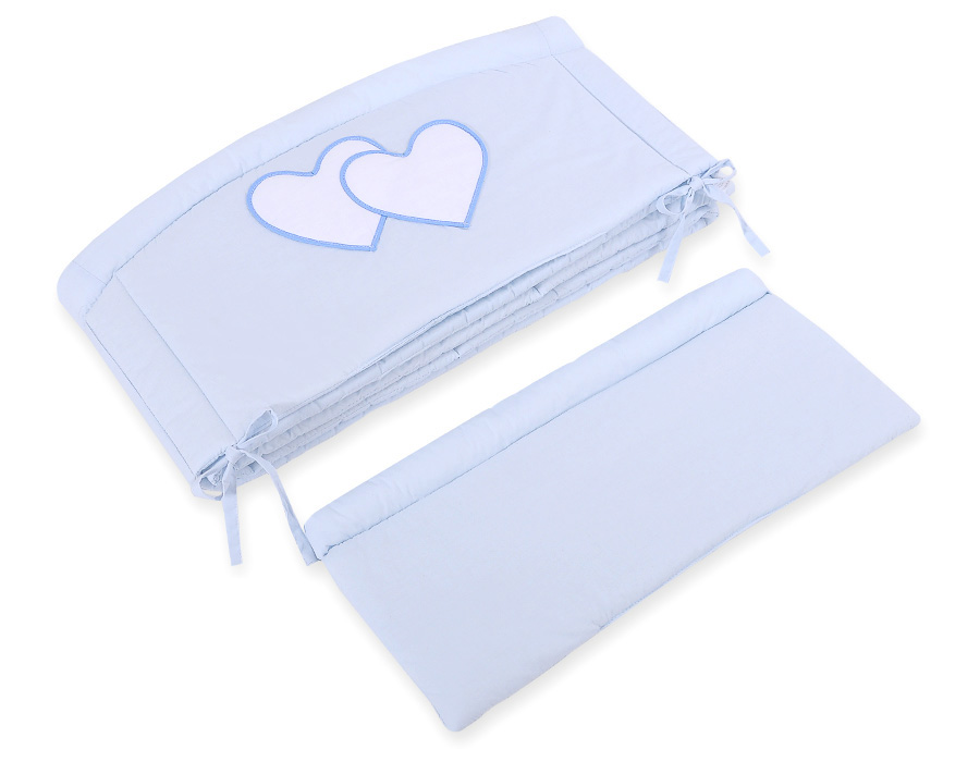 Ochraniacz do łóżeczka na szczebelki uniwersalny XXL - Serduszka niebieskieOchraniacz do łóżeczka na szczebelki uniwersalny XXL – Serduszka niebieskie