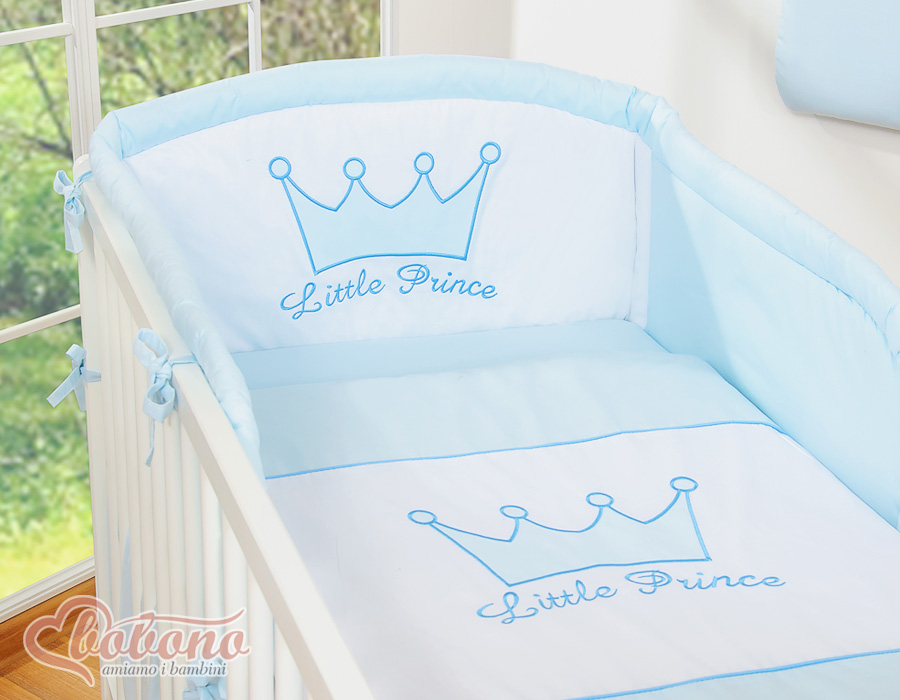 2. POSZEWKA NA KOŁDERKĘ 90×120 cm lub 135×100 cm. Wykonana z tkaniny 100% bawełnianej. Bezpiecznej dla delikatnej skóry dziecka. Posiadającej atest Okotex lub TUV. Poszewka zapinana na bezpieczny kryty zameczek. Na środku poszewki znajduje się śliczną aplikacja z koroną i wyhaftowanym napisem: “Little Prince” – dla chłopca lub “Little Princess” – dla dziewczynki.