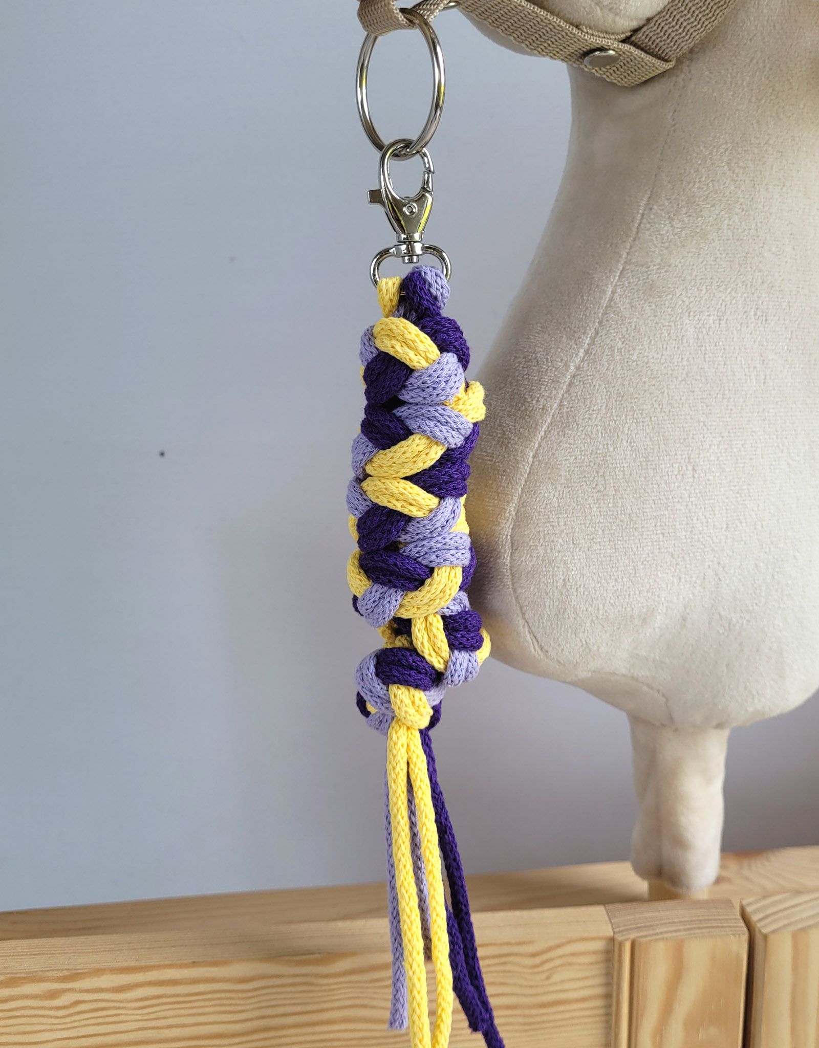 Uwiąz dla konia Hobby Horse pleciony ze sznurka – fiolet/ ciemny fiolet/ żółtyUwiąz dla konia Hobby Horse pleciony ze sznurka – fiolet/ ciemny fiolet/ żółty