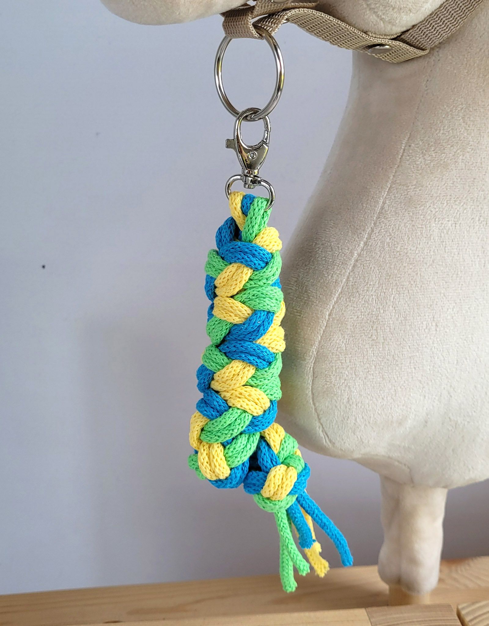 Uwiąz dla konia Hobby Horse pleciony ze sznurka – jasny zielony/ turkus/ żółtyUwiąz dla konia Hobby Horse pleciony ze sznurka – jasny zielony/ turkus/ żółty