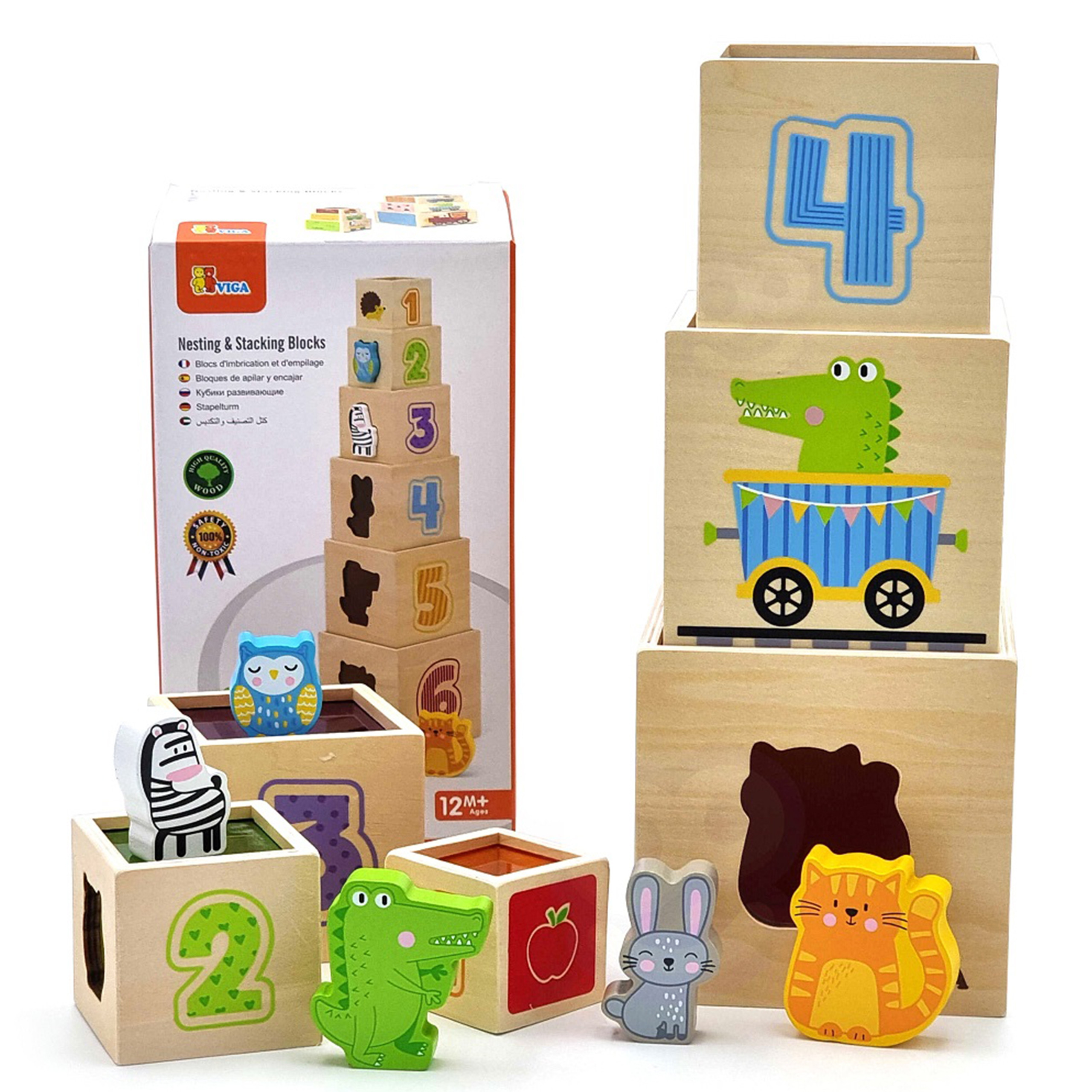 VIGA Drewniana Piramidka Układanka Klocki Sorter Montessori