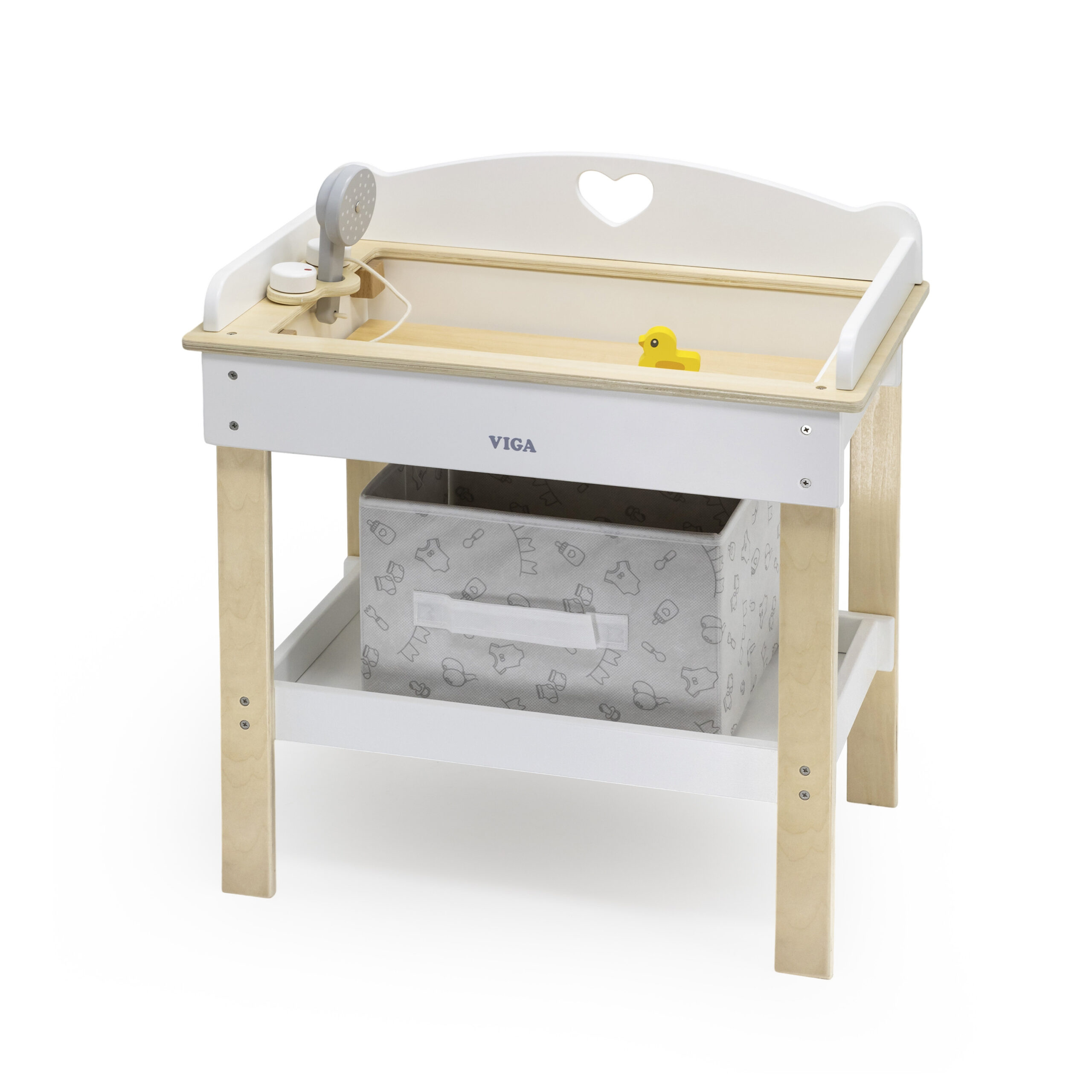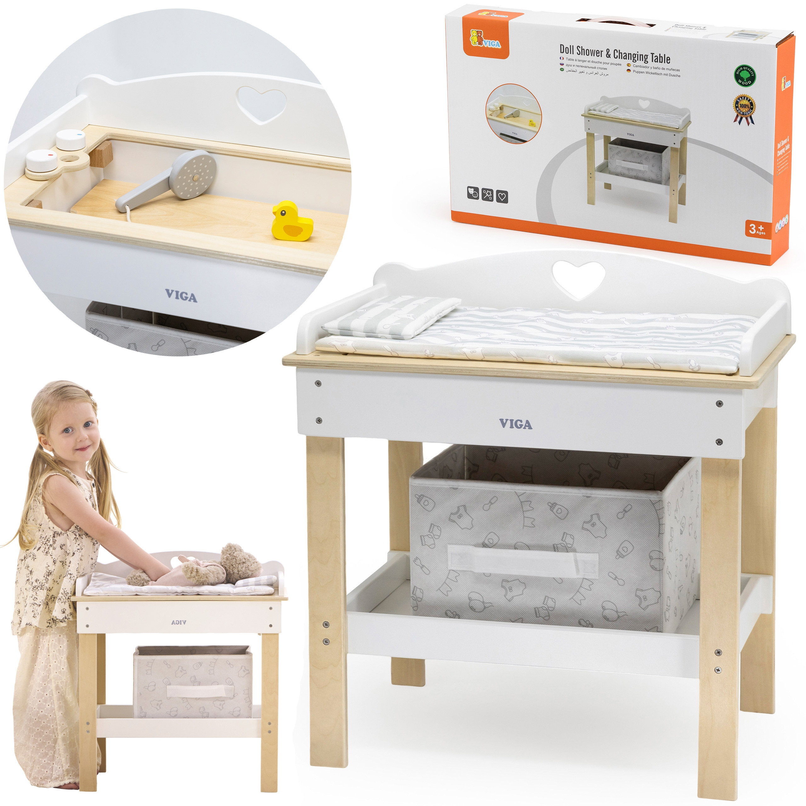 Drewniany przewijak 2w1 od marki VIGA to funkcjonalna zabawka, która umożliwia dziecku opiekę nad lalką w realistyczny sposób. Połączenie przewijaka i wanienki pozwala na wykonywanie codziennych czynności pielęgnacyjnych takich jak kąpiel, przewijanie czy pielęgnacja. Stabilna konstrukcja oraz odpowiednia wysokość sprawiają, że zabawa jest wygodna i bezpieczna. Przemyślana forma umożliwia łatwy dostęp do wszystkich elementów i zachęca do odgrywania ról, rozwijając empatię oraz wyobraźnię dziecka.