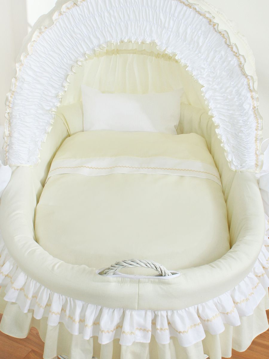 Wiklinowy kosz Mojżesza ze składaną budką Bellamy – biały + kremowa pościel
