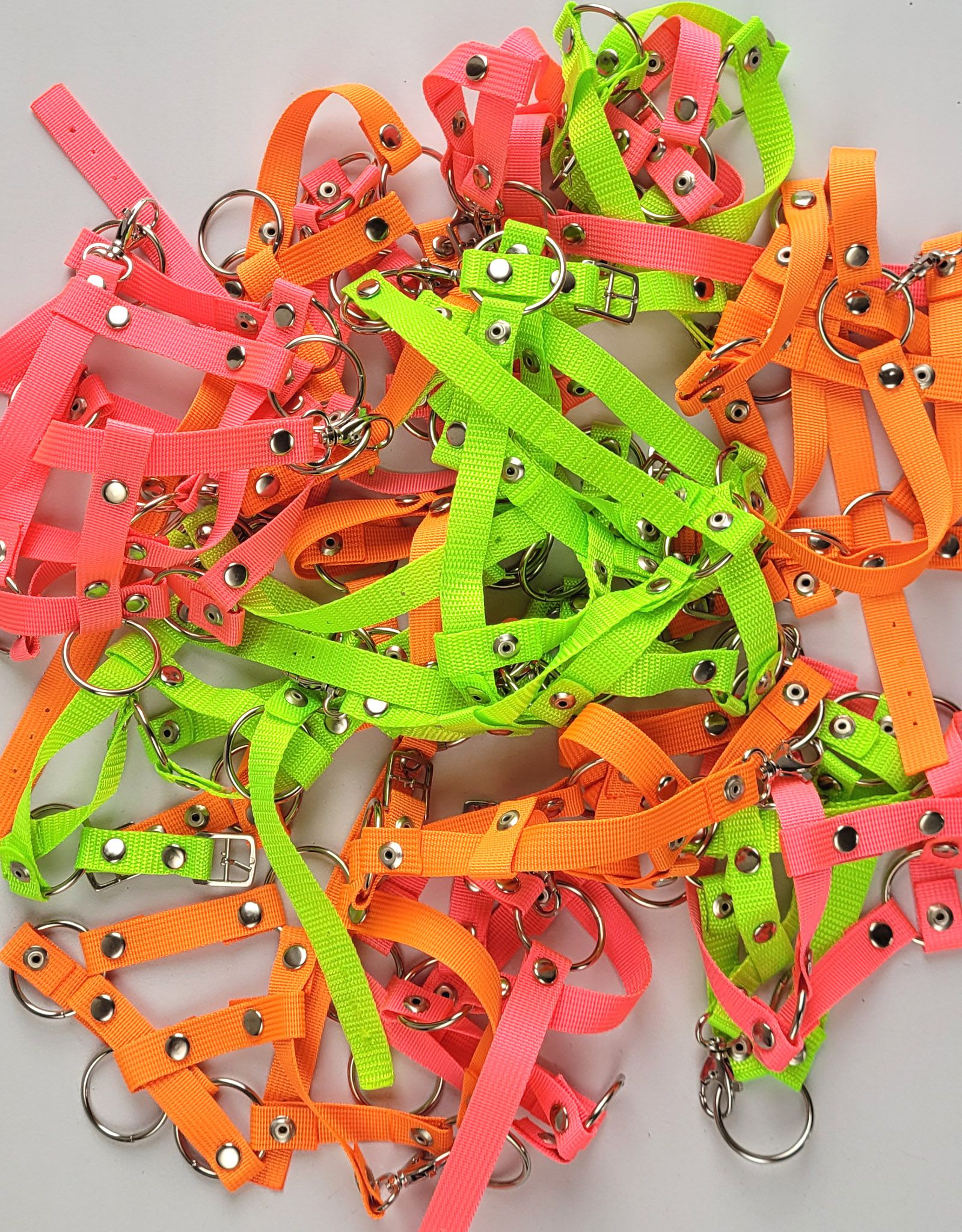 Praktyczne i trwałe wodze dla konika Hobby Horse. Wodze wykonane są ręcznie z najwyższej jakości solidnej taśmy o szerokości 1,5 cm w jaskrawym neonowym kolorze. Wodze dla Hobby Horse są po obu stronach zakończone karabińczykami, co pozwala na łatwe zapinanie do kantara, haltera czy ogłowia. Metalowe elementy wodzy – napy i zapięcie na karabińczyk – w kolorze srebrnym. Wodze są łatwe w użytkowaniu, mocne, odporne na zabrudzenia.