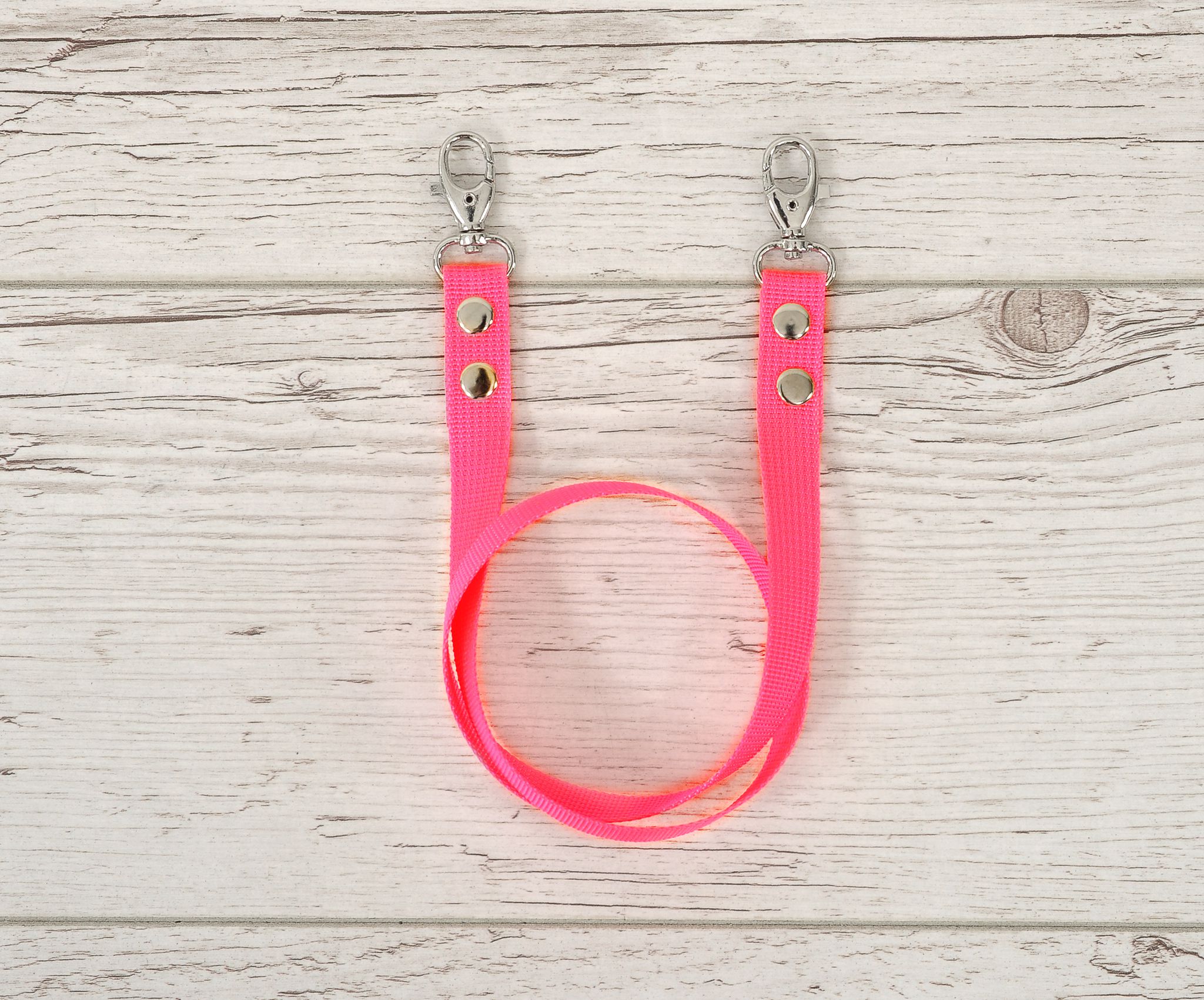 Praktyczne i trwałe wodze dla konika Hobby Horse. Wodze wykonane są ręcznie z najwyższej jakości solidnej taśmy o szerokości 1,5 cm w jaskrawym neonowym kolorze. Wodze dla Hobby Horse są po obu stronach zakończone karabińczykami, co pozwala na łatwe zapinanie do kantara, haltera czy ogłowia. Metalowe elementy wodzy – napy i zapięcie na karabińczyk – w kolorze srebrnym. Wodze są łatwe w użytkowaniu, mocne, odporne na zabrudzenia.