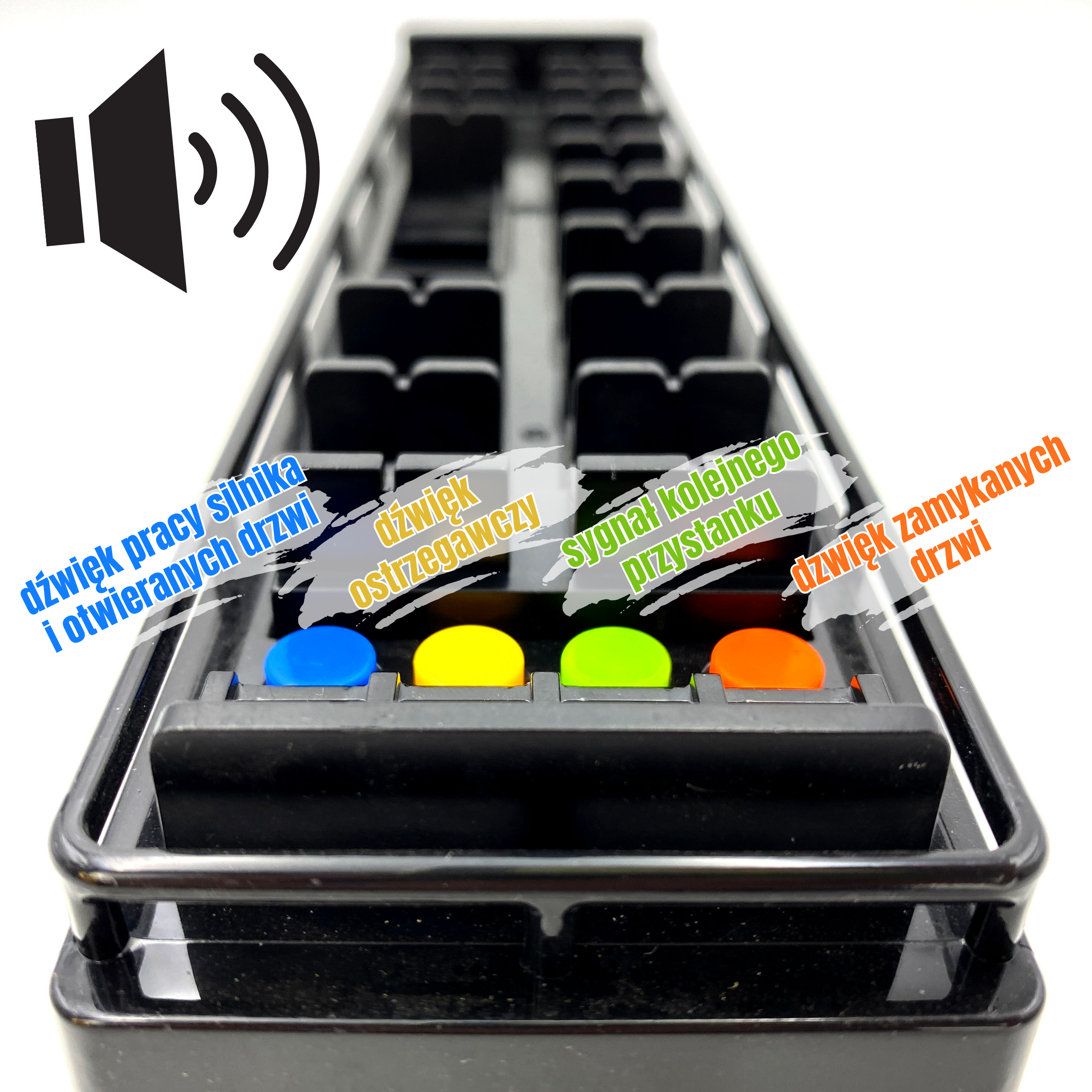 - – guzik pomarańczowy – dźwięk zamykania drzwi.