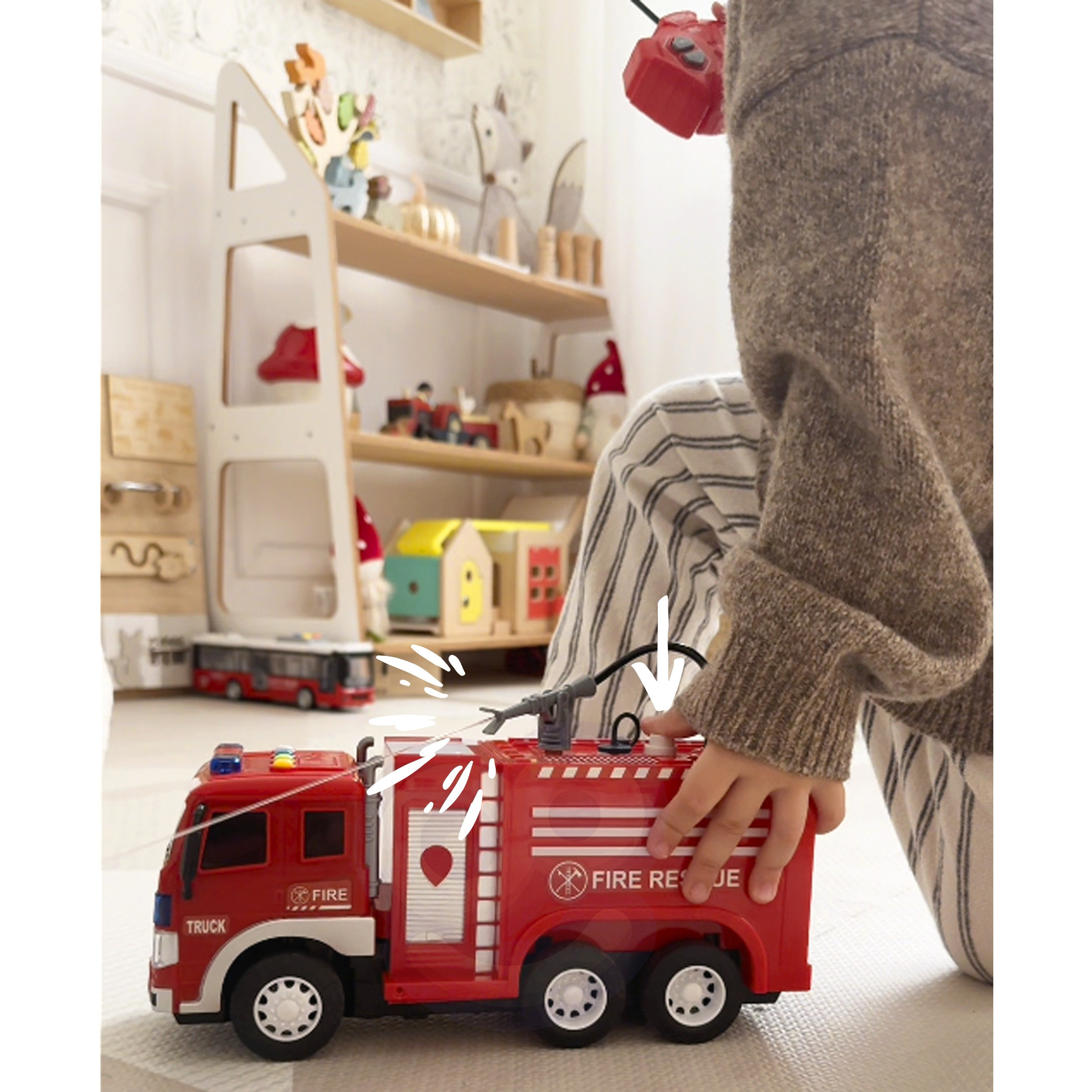 - – Realistyczne funkcje – wyposażony w autentyczne efekty świetlne, dźwiękowe i wodne, które imitują syreny, migające światła i inne charakterystyczne odgłosy pojazdów strażackich
