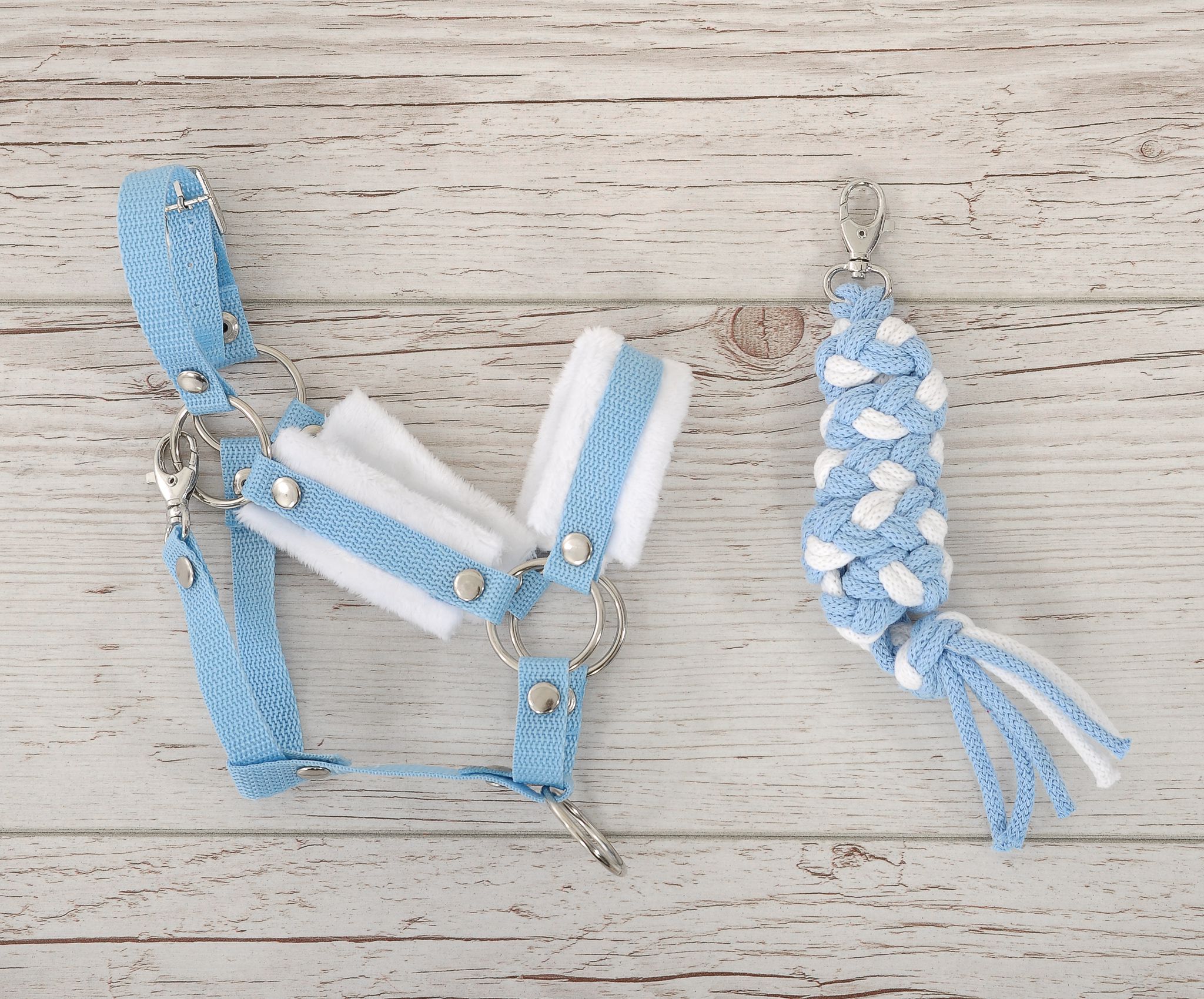 Zestaw dla Hobby Horse: kantar regulowany A3 z białym futerkiem + uwiąz ze sznurka podwójnie pleciony