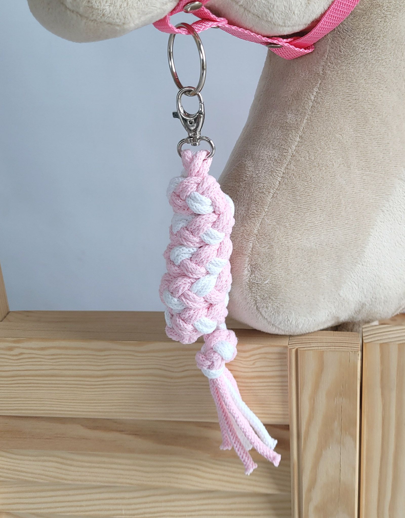 Zestaw do Hobby Horse: kantar A3 z białym futerkiem + uwiąz ze sznurka - biało-różowyZestaw do Hobby Horse: kantar A3 z białym futerkiem + uwiąz ze sznurka – biało-różowy