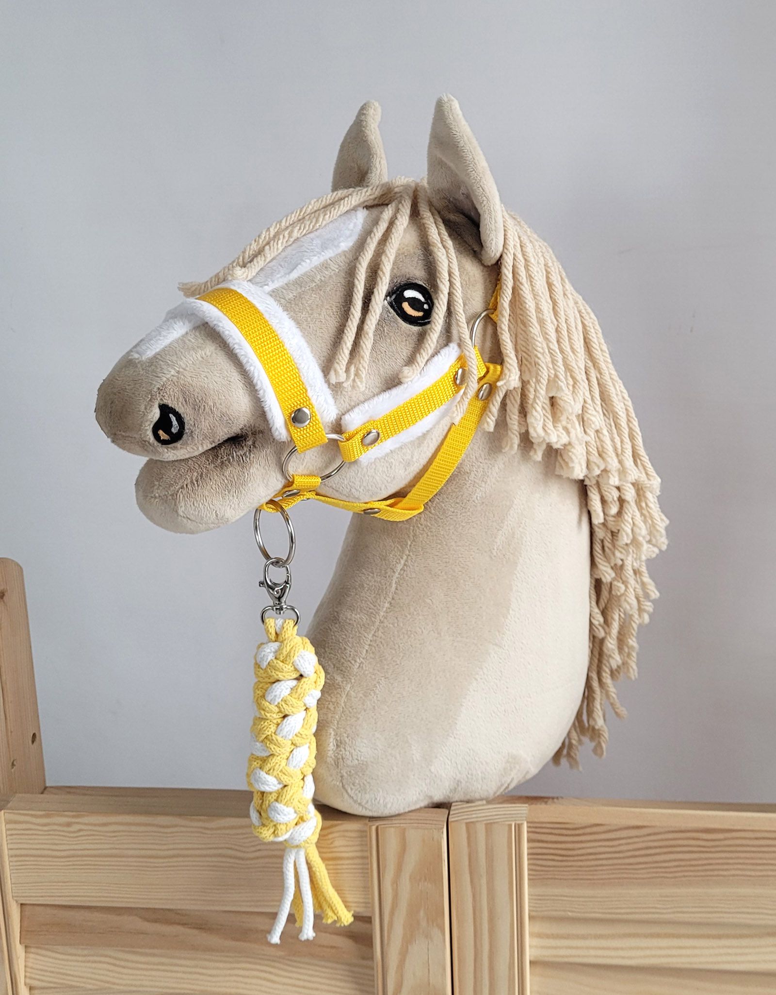 Zestaw do Hobby Horse: kantar A3 z białym futerkiem + uwiąz ze sznurka – biało-żółty