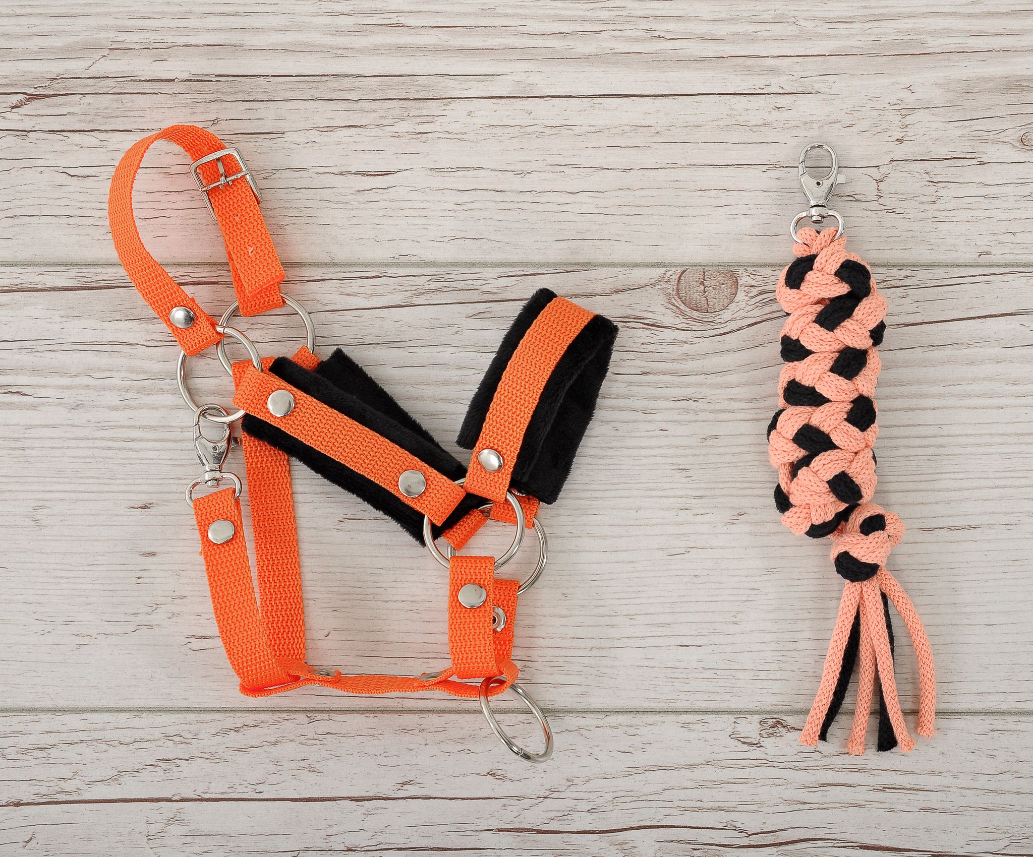 Zestaw dla Hobby Horse: kantar regulowany A3 z czarnym futerkiem + uwiąz ze sznurka podwójnie pleciony